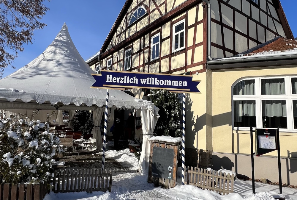 Bei bester Laune, mit viel frischer Luft in der Lunge, einigen wohltuenden Getränken im Magen und großem Hunger erreichten wir gegen 14.00 Uhr die Gaststätte "Zum Lindenbaum" in Hetschburg, wo ein zünftiges Thüringer Essen auf uns wartete.